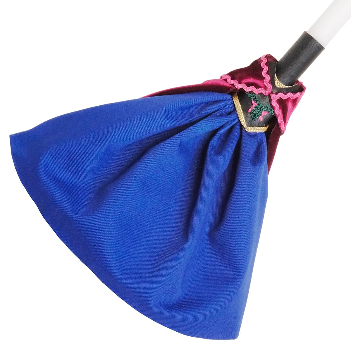 Χειροποίητη στρόγγυλη λαμπάδα Άννα Frozen με βάση από μαύρη δερματίνη, μπλε φόρέμα, μπούστο μαύρο και κάπα μπορντώ από βελούδο υψηλής ποιότητας.