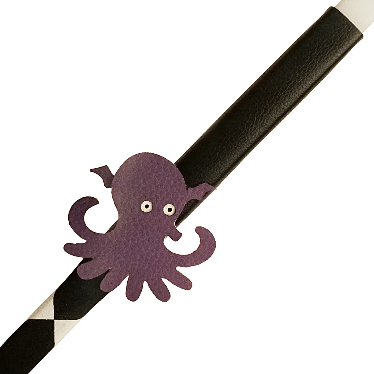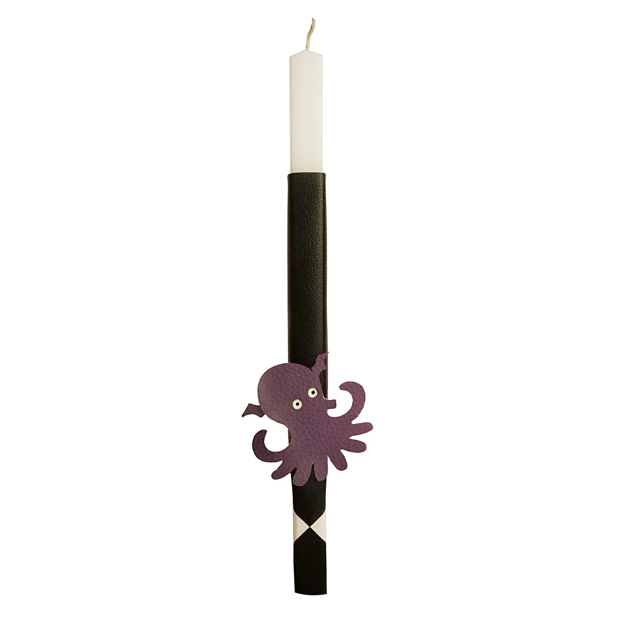 Λαμπάδα Κθουλάκι με βάση από μαύρη δερματίνη και ποπλίνα με σχέδιο σκακιέρα, το κθουλάκι είναι από μωβ δερματίνη..