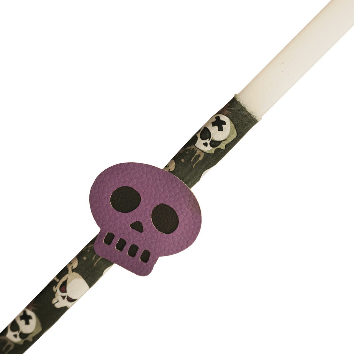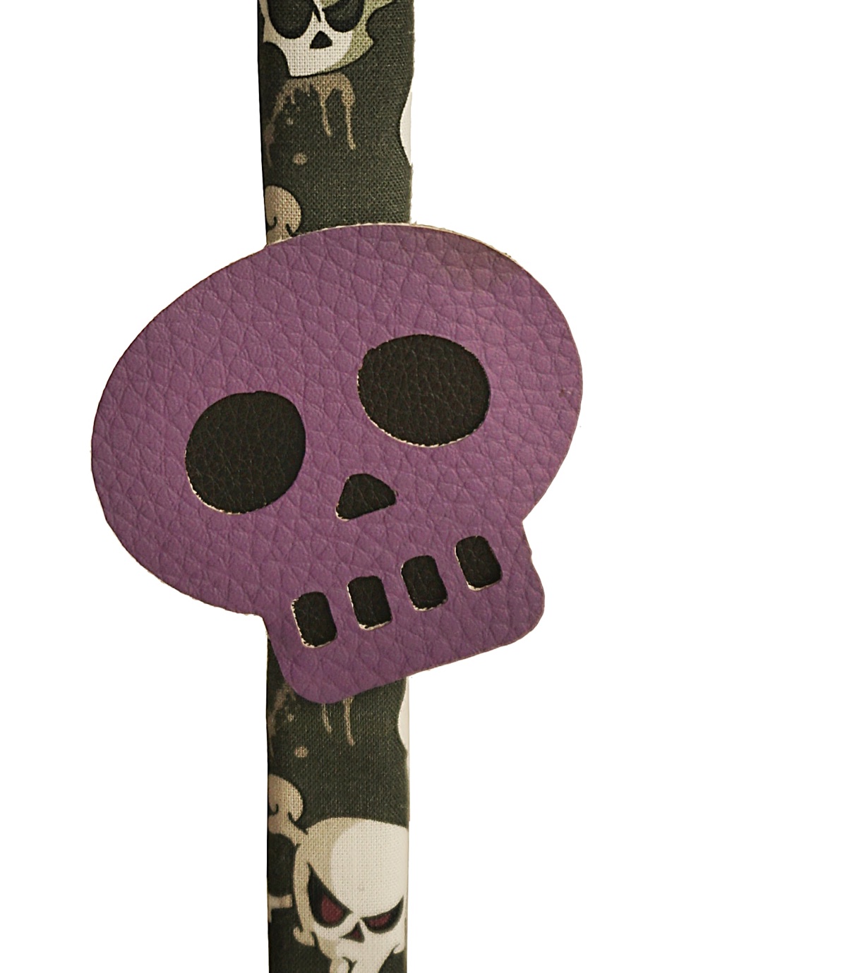 Λαμπάδα Sκull από μωβ δερματίνη και βάση από ποπλίνα με νεκροκεφαλές.
