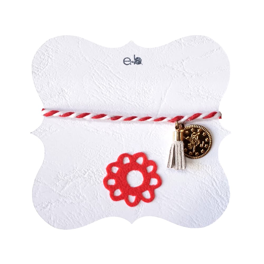 Χειροποίητο γυναικείο μαρτάκι με γκρι φουντίτσα, χρυσό φλουρί