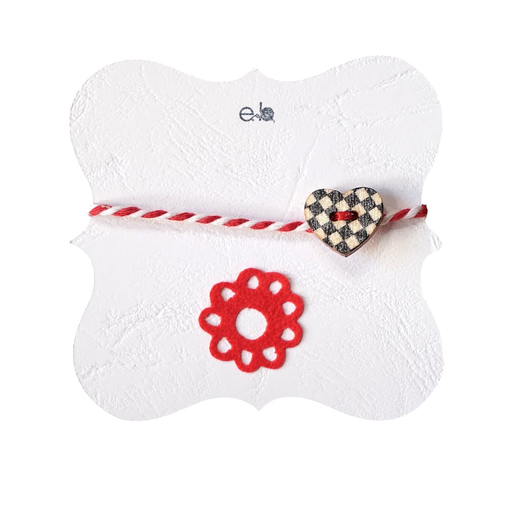 Χειροποίητο γυναικείο μαρτάκι με ξύλινη ασπρόμαυρη καρδούλα