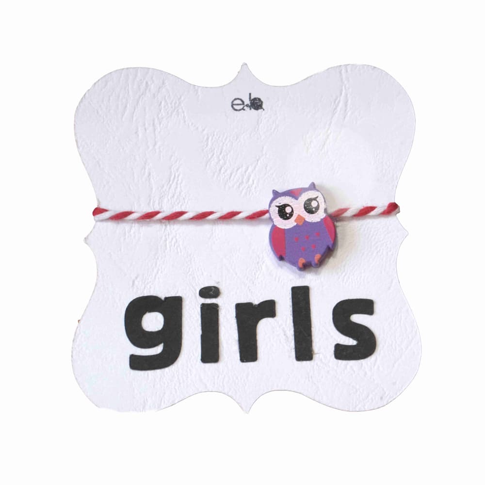 Χειροποίητο μαρτάκι παιδικό για κορίτσι με ξύλινη  μωβ κουκουβάγια
