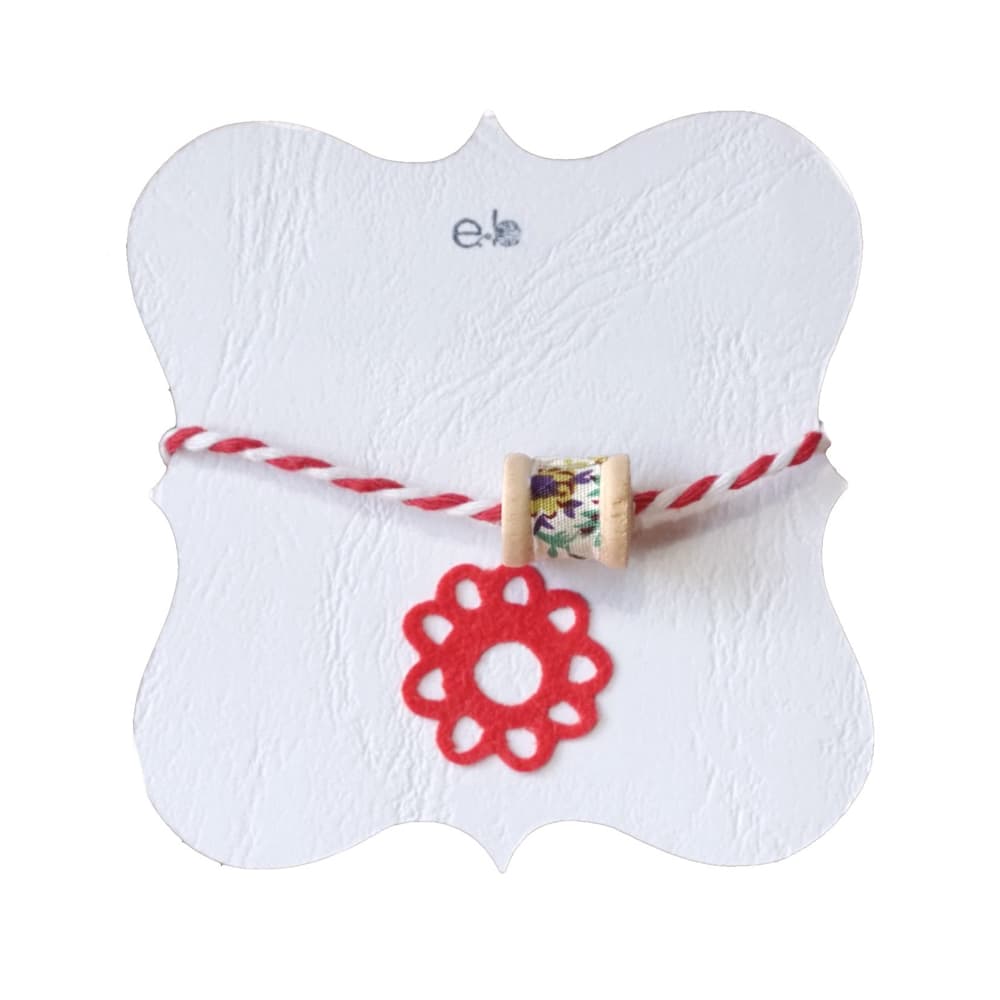 Χειροποίητο γυναικείο μαρτάκι με ξύλινο κουβαράκι με floral ύφασμα και κούμπωμα παπαγαλάκι