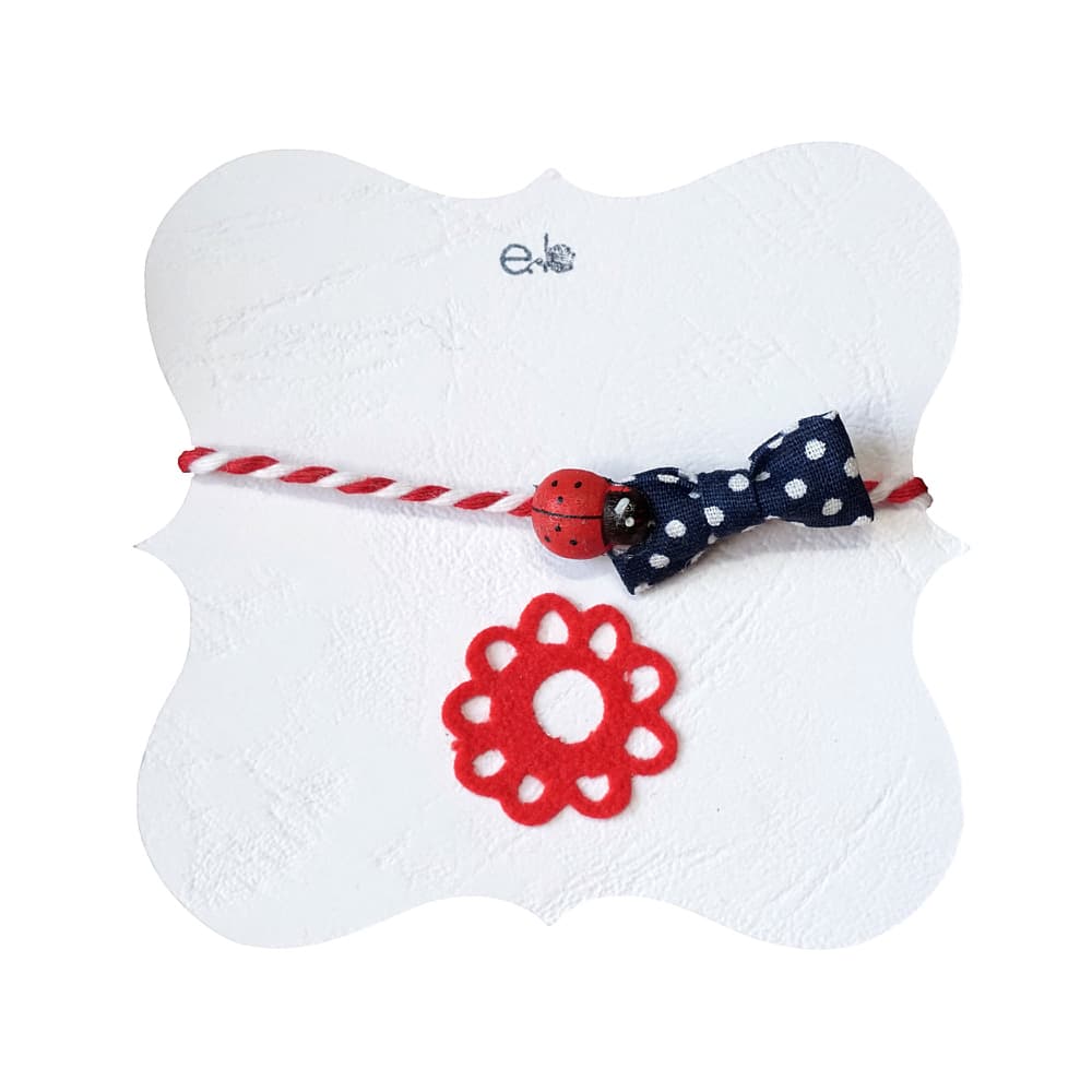 Χειροποίητο γυναικείο μαρτάκι με μπλε πουά φιογκάκι, πασχαλίτσα