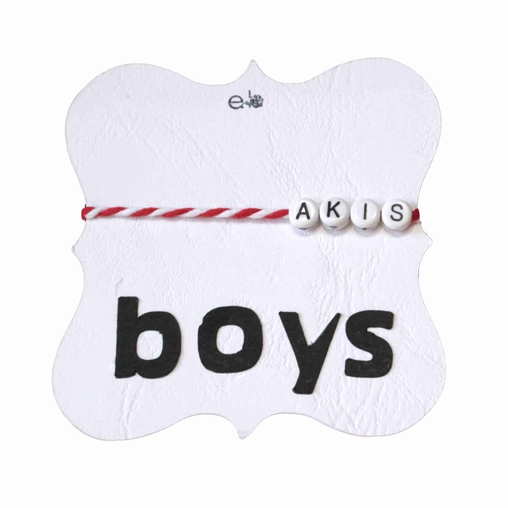 Χειροποίητο μαρτάκι παιδικό για αγόρι με όνομα της επιλογής σας κατόπιν παραγγελίας με κόμπους για κλείσιμο