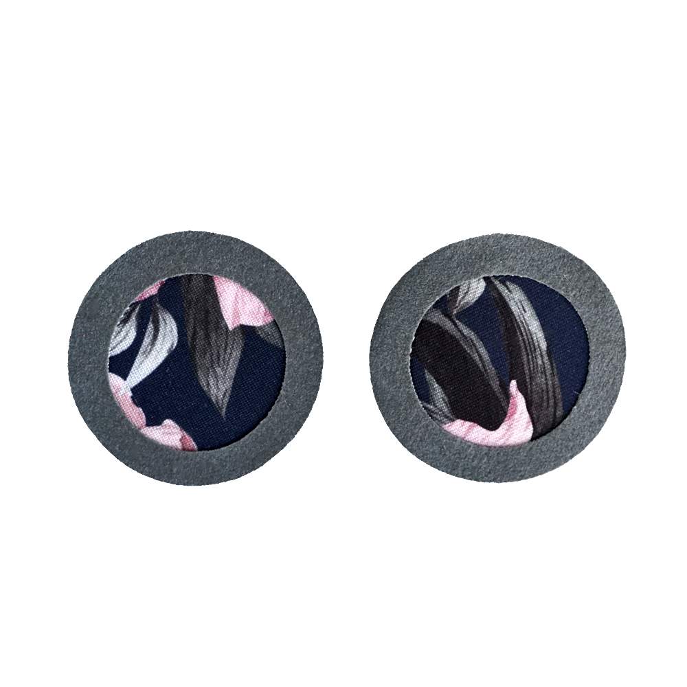 Χειροποίητα σκουλαρίκια από γκρι suede και floral μπλε ύφασμα με κούμπωμα καρφάκι