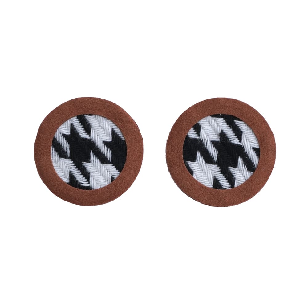 Χειροποίητα σκουλαρίκια κύκλοι από καφέ suede και πιε ντε πουλ ύφασμα με κούμπωμα καρφάκι