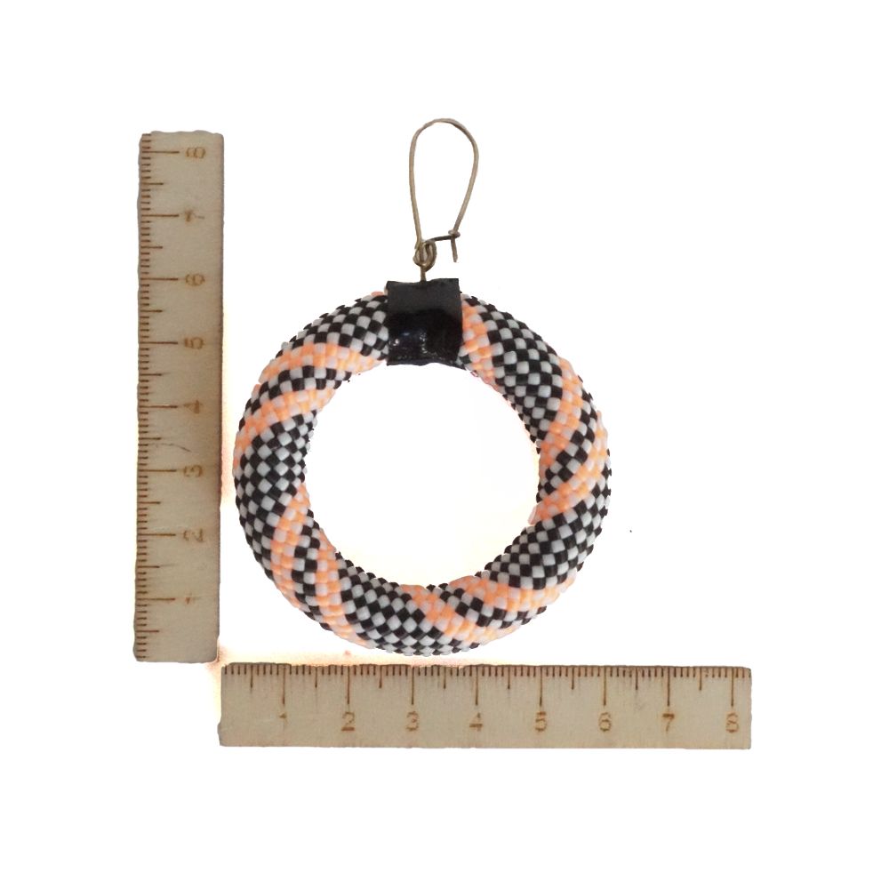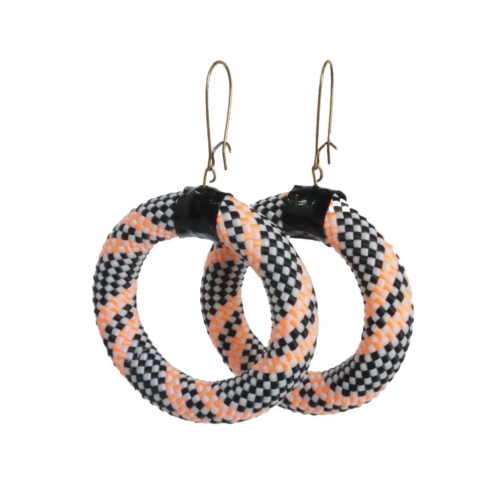 Χειροποίητα σκουλαρίκια κύκλος, κρεμαστά από πολύχρωμο ορειβατίκο κορδόνι και μάυρο vinyl