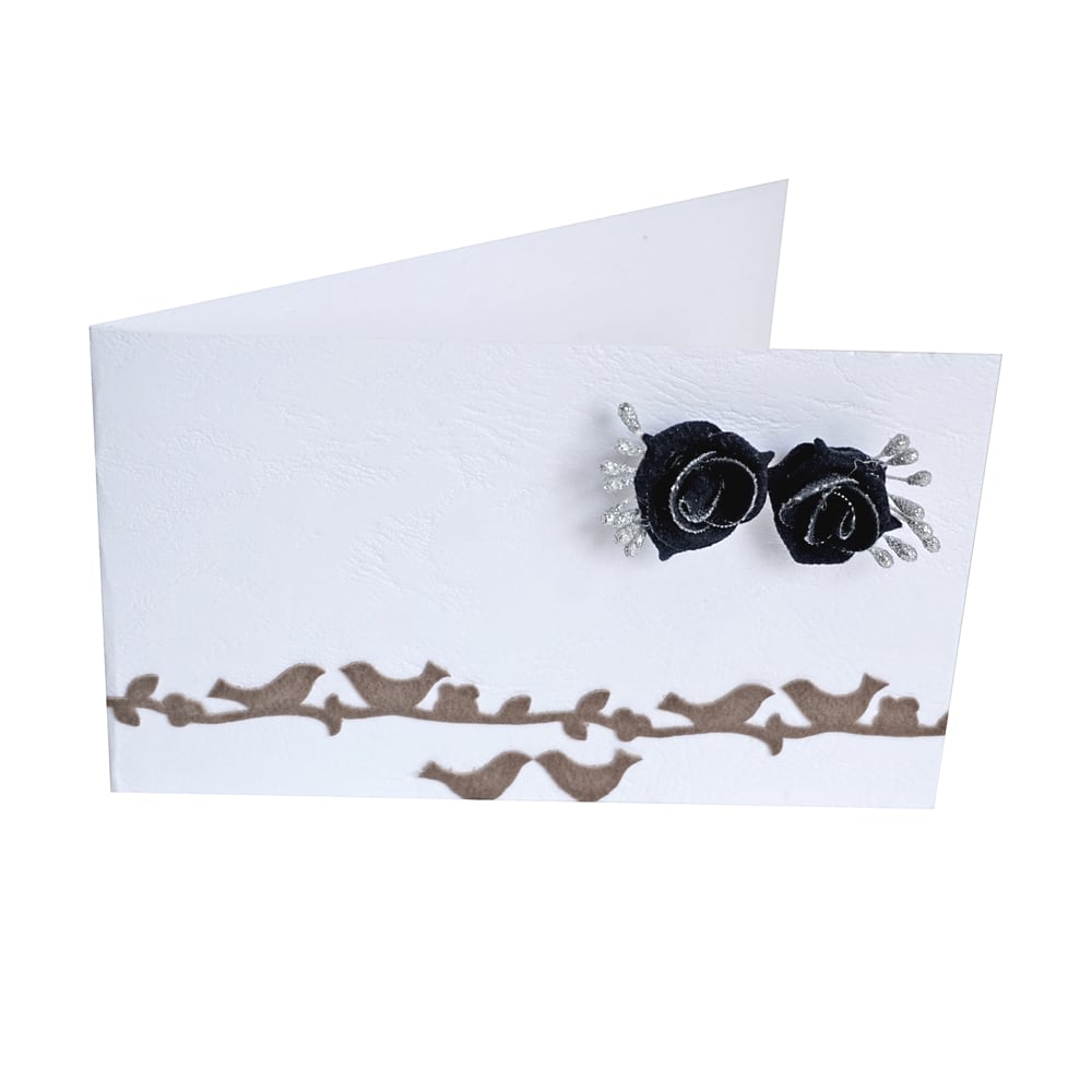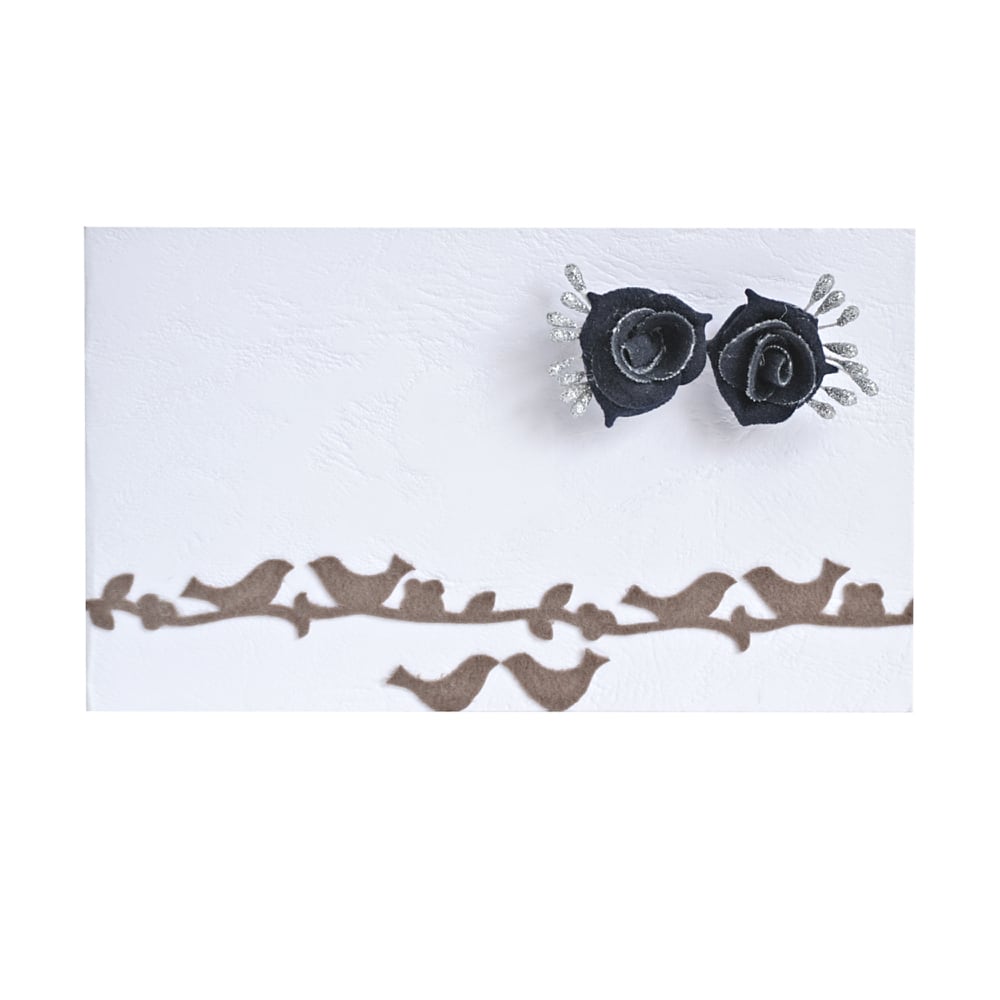 Xειροποίητα σκουλαρίκια τριαντάφυλλα με ασημί λεπτομέρειες και χειροποίητη κάρτα λευκή