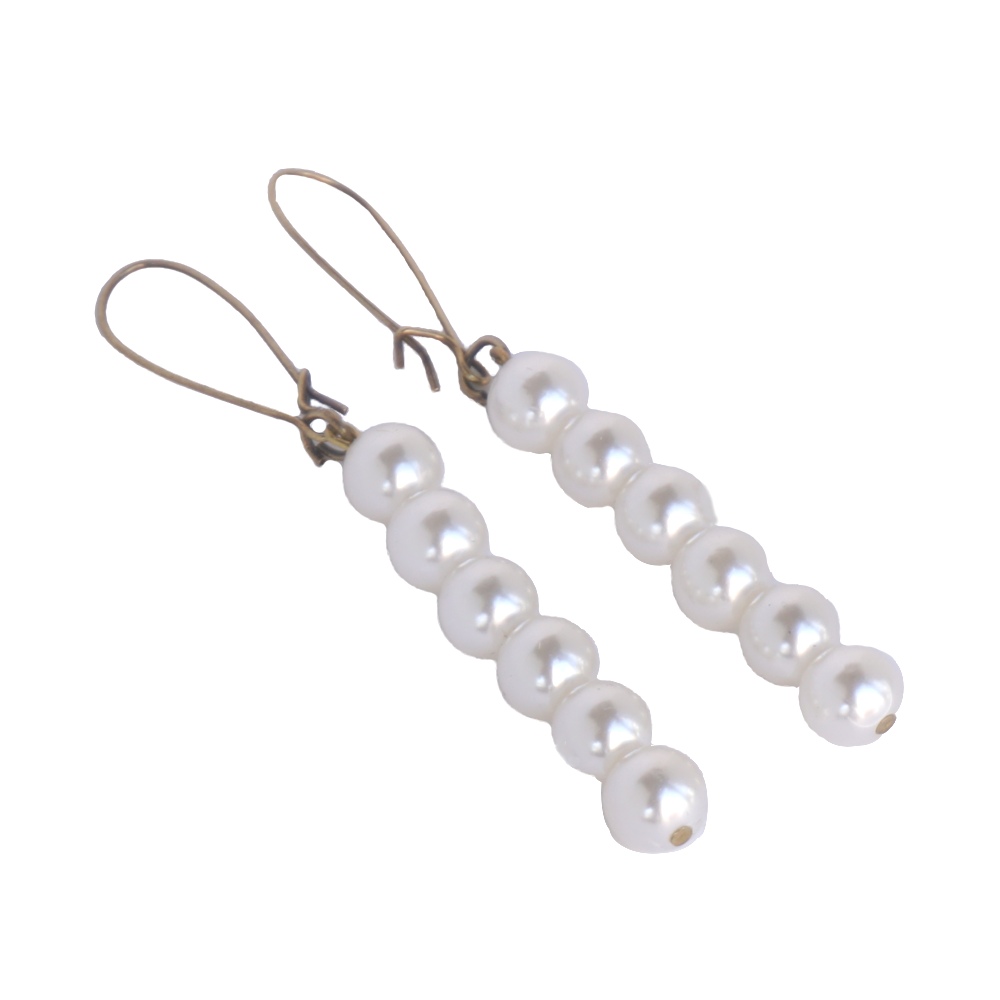 Χειροποίητα σκουλαρίκια κρεμαστά από λευκές πέρλες.
