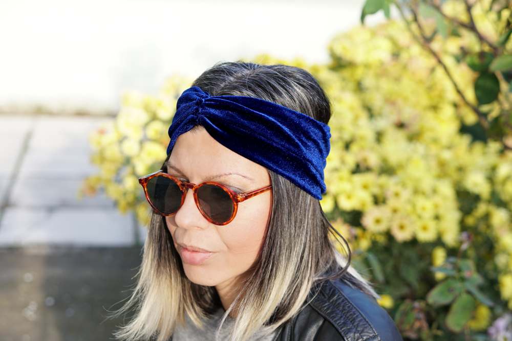 Βελούδινο χειροποίητο turban σε χρώμα μπλε navy