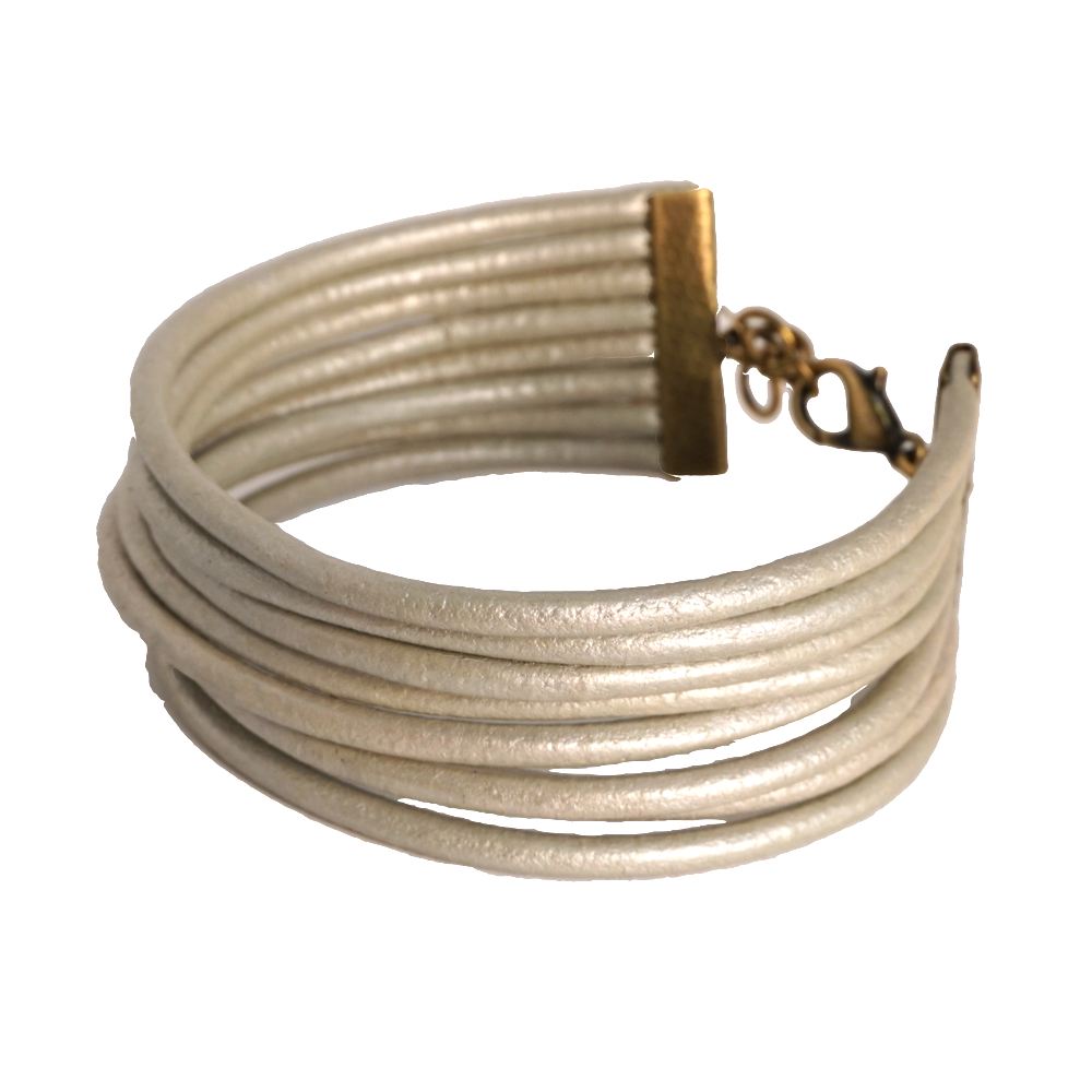 Βραχιόλι από ασημί δέρμα και μπρονζέ ακροδέκτη