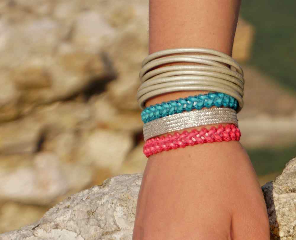 Βραχιόλι από ασημί δερμάτινες λωρίδες