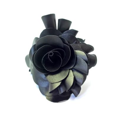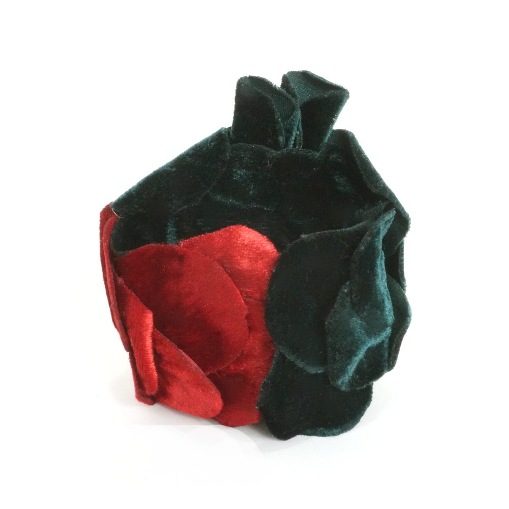 Βραχιόλι από κυπαρισσί και βυσσινί βελούδινα πέταλα με κούμπωμα από μαύρη μεταλλική σούστα